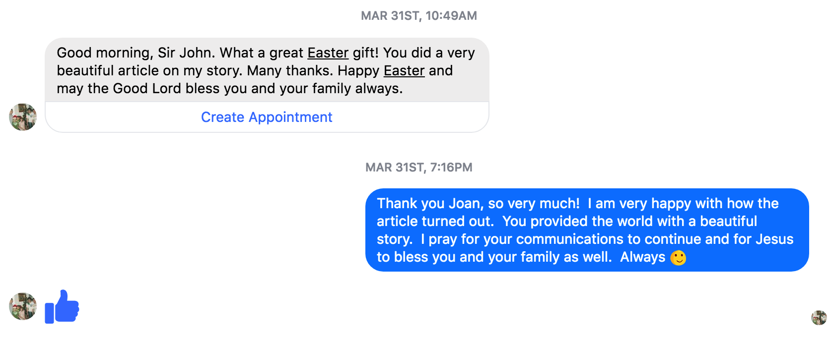 Before we start, here’s a quick followup on evidence published March 31, 2018 titled Two Days Later, Guess What Happens, which features communications a mother is receiving from her late-son who now lives in heaven. Here is her message to me.