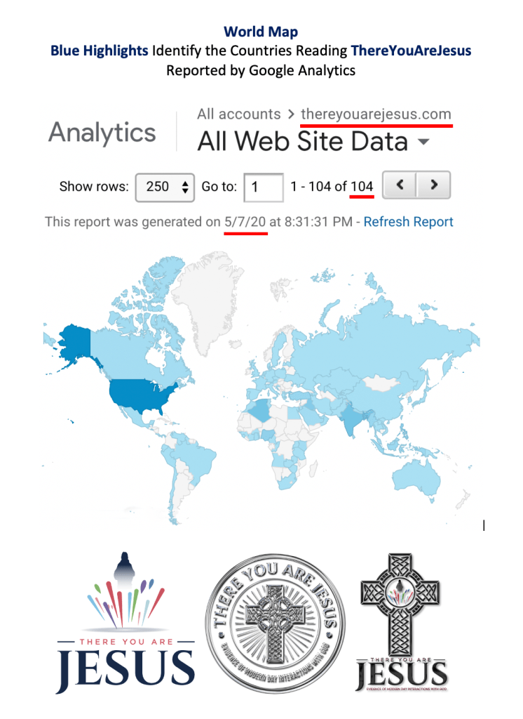Amen. I’m John LeVay on There You Are Jesus, publishing evidence of modern-day interactions with God. You can contact me directly and I ask that you do with any suggestions, any comments, any contributions. I would love to share what you have on There You Are Jesus by emailing me at this address, john at there you are jesus dot com. That’s john at there you are jesus dot com. Thank you for listening to There You Are, Jesus.