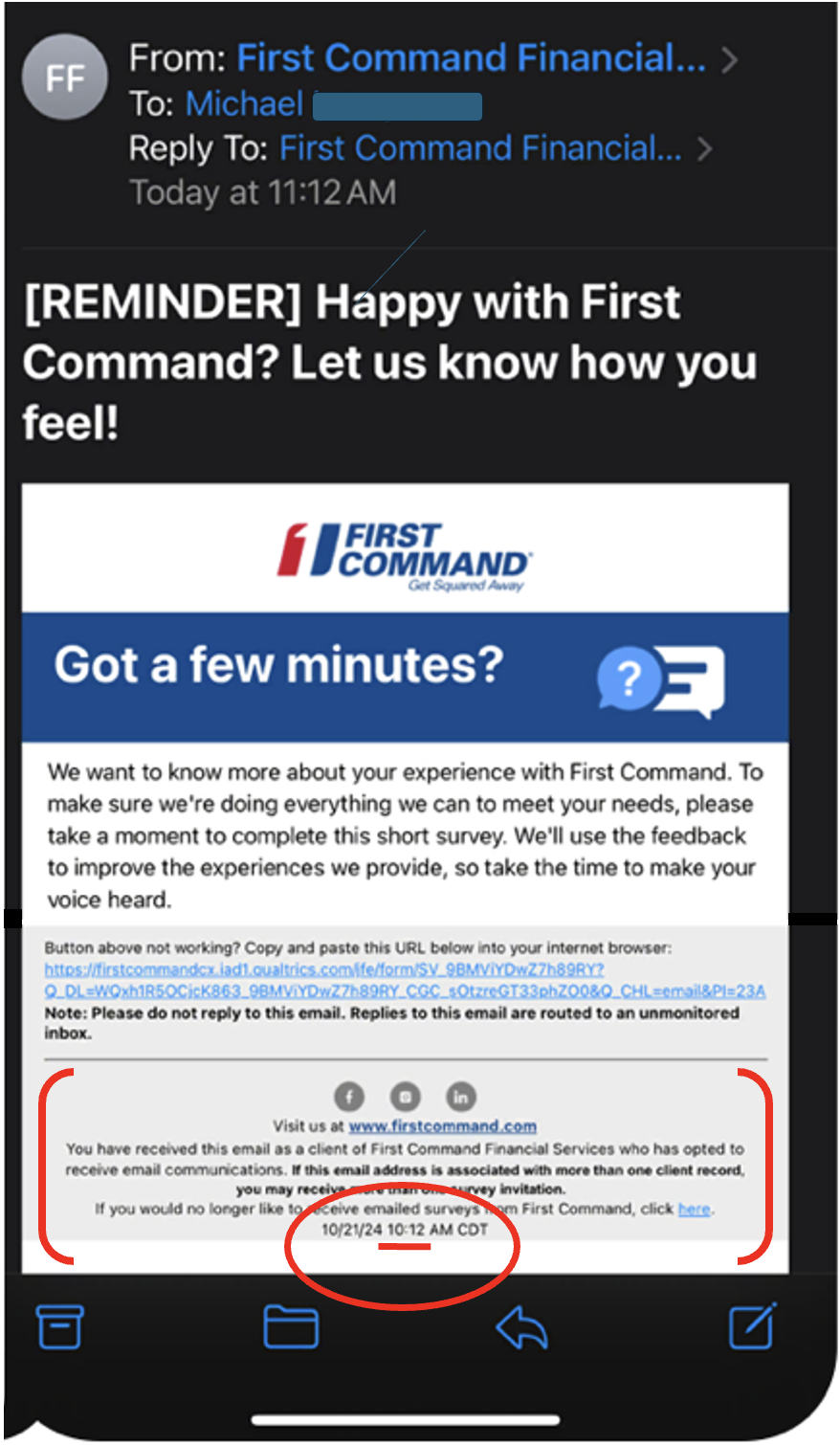 In this second coincidence, look at the red circle below at the bottom of the next image. You will see a red line inside of the circle that is underlining the time of 10:12 AM. 10/12 is God’s spiritual signature for my grandfather George. His birthday is October 12th. Of all the numbers that could have appeared as this email’s timestamp of arrival, the numbers happen to be George’s and mine. One question though, how does one email have 2 different arrival times? The answer is because one uses Eastern Daylight Time (EDT) and the other uses Central Daylight Time (CDT) … EDT is 1 hour ahead of CDT … 11:12 am Eastern is 10:12 am Central. 11/12 is my birthday and 10/12 is my grandfather’s birthday.